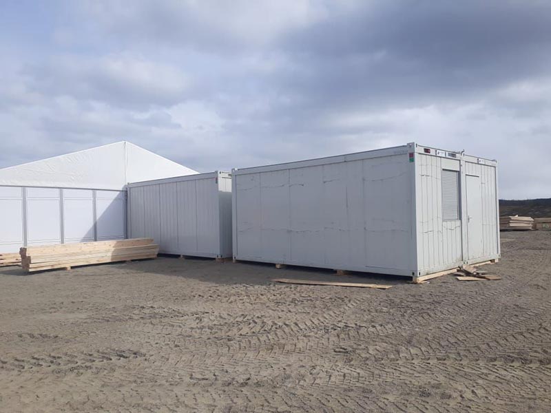 За неделю, в рекордно-сжатые сроки, мы перепрофилировали 37 офисных контейнеров Containex, имевшихся на складе, в санитарные, установили станции водоподготовки и автономные канализации.