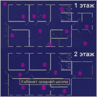 Красными точками отмечены круговые панорамы кабинетов и помещений
